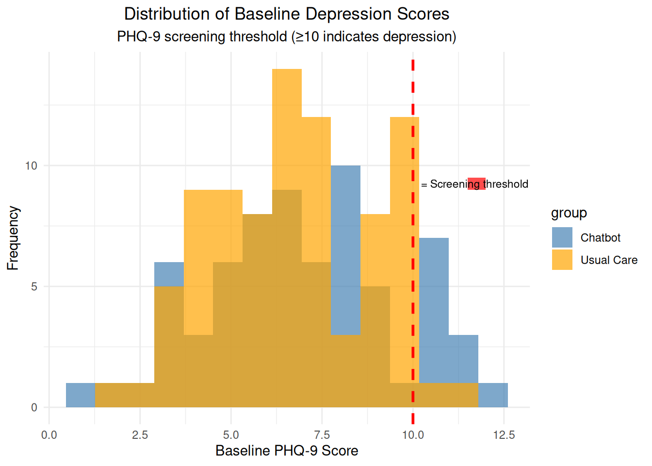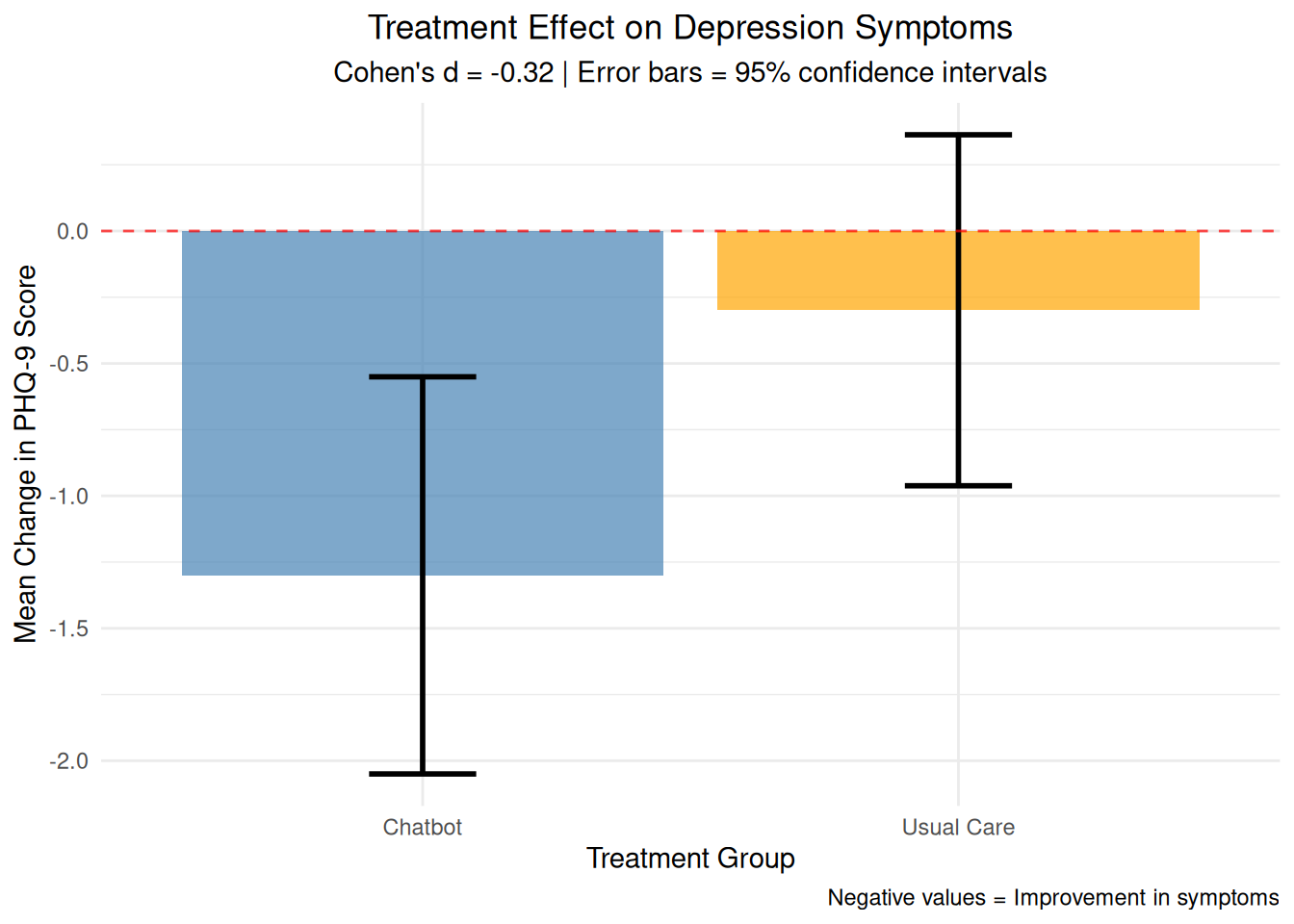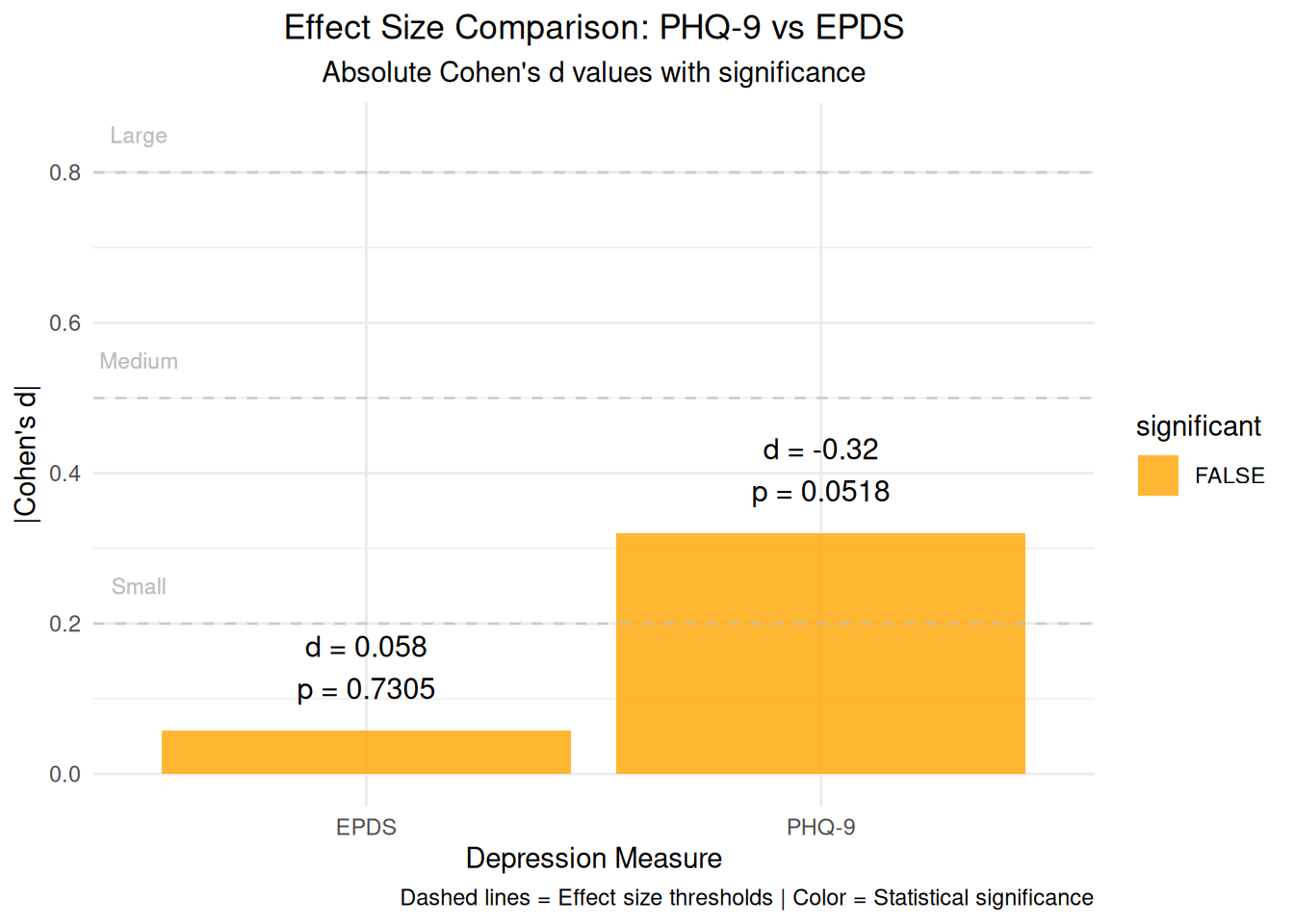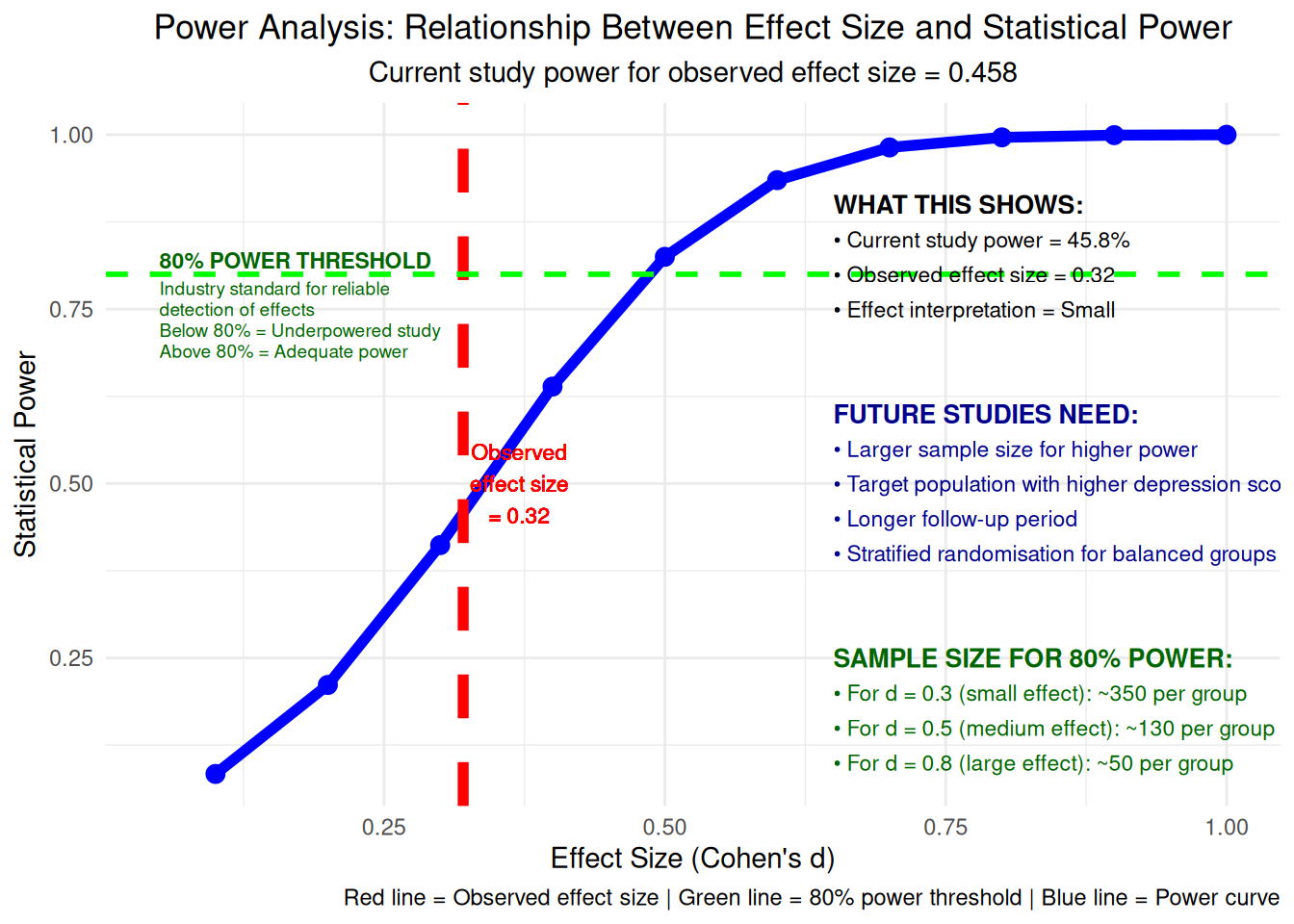 x = "Effect Size (Difference in PHQ-9 Change)", y = "Density",