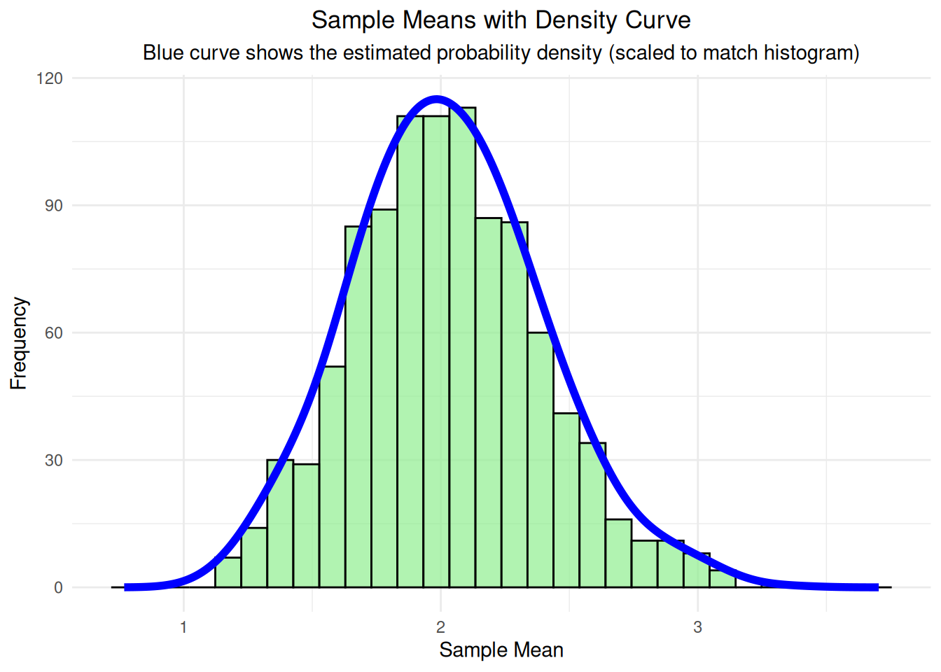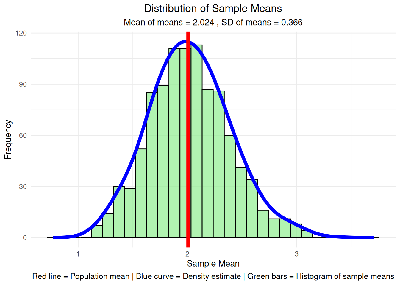 x = "Sample Mean", y = "Frequency") +