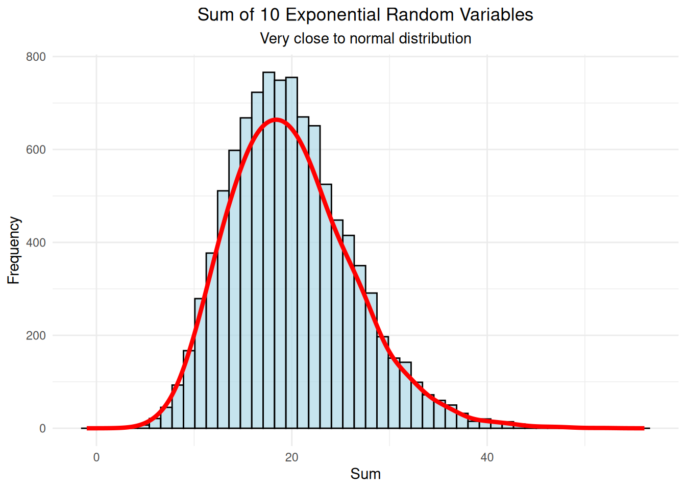 Mean: Observed = 19.99 | Theoretical = 20 | Difference = -0.01