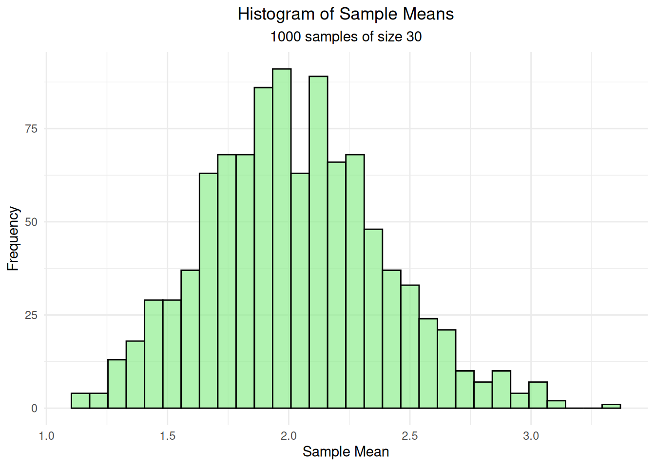 cat("Generated", n_samples, "samples of size", sample_size, "\n")Generated 1000 samples of size 30